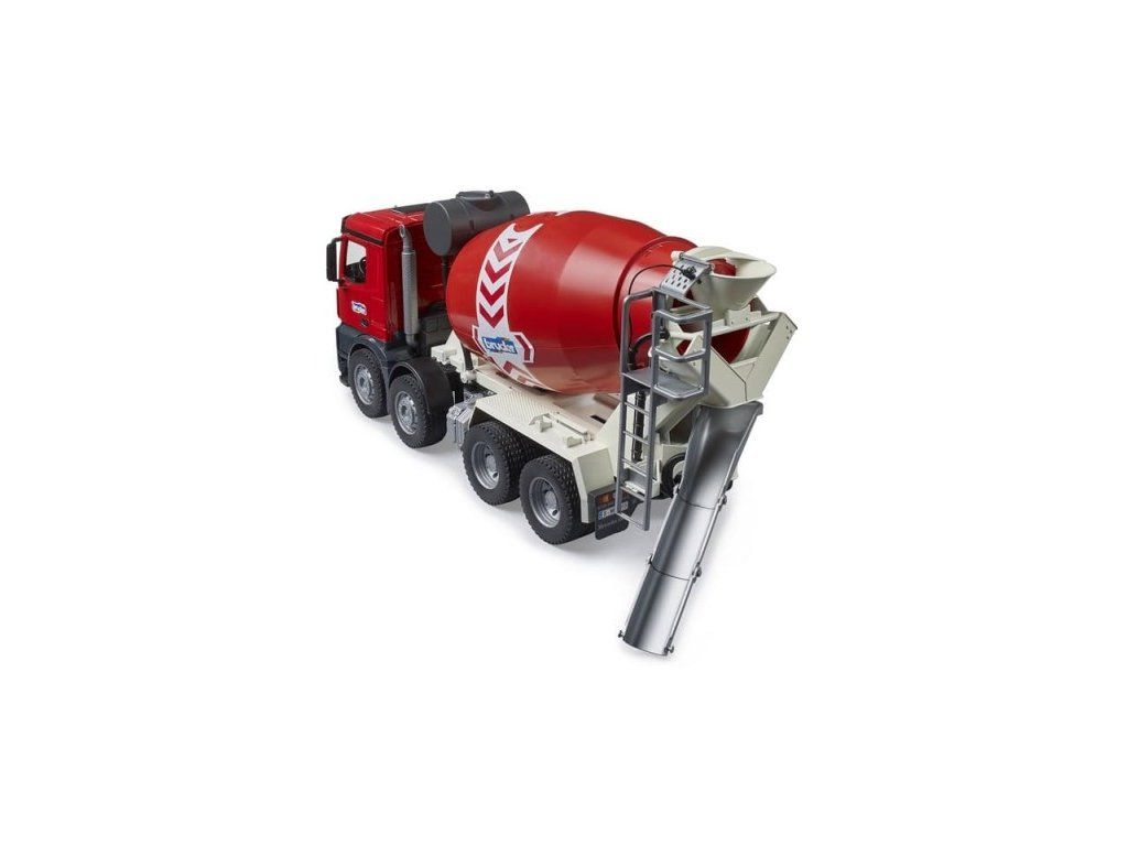 Otočný miešací bubon umožňuje prípravu stavebného materiálu priamo počas hry. Zmenou smeru otáčania je možné obsah jednoducho vyprázdniť do výsypného žľabu v zadnej časti.