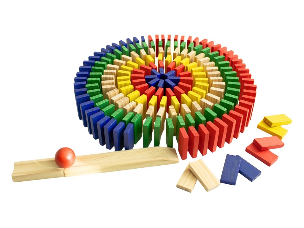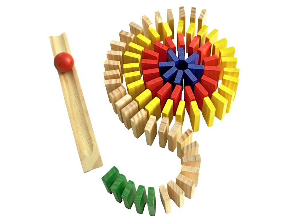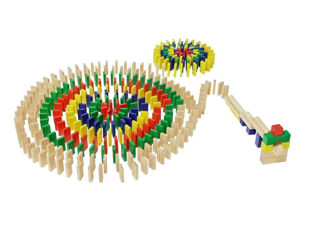 Barevné drevené domino s 400 dielikmi prinesie deťom hodiny zábavy, tvorenia a objavovania. Vďaka pestrým farbám a kvalitnému drevu si deti môžu stavať dlhé dráhy, špirály aj vlastné originálne obrazce a následne sledovať úžasný reťazový efekt pri ich zhadzovaní.