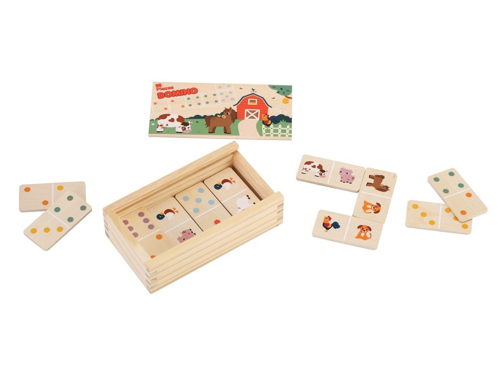 Jedna hra, dva spôsoby zábavy pre malé aj väčšie deti! S obojstranným dominom sa deti nielen skvele zabavia, ale zároveň prirodzene rozvíjajú svoje schopnosti. Menšie deti si užijú skladanie pomocou veselých obrázkov zvieratiek z farmy, zatiaľ čo väčšie si zahrajú klasické domino s bodkami a nenásilne si precvičia počítanie aj logické uvažovanie.