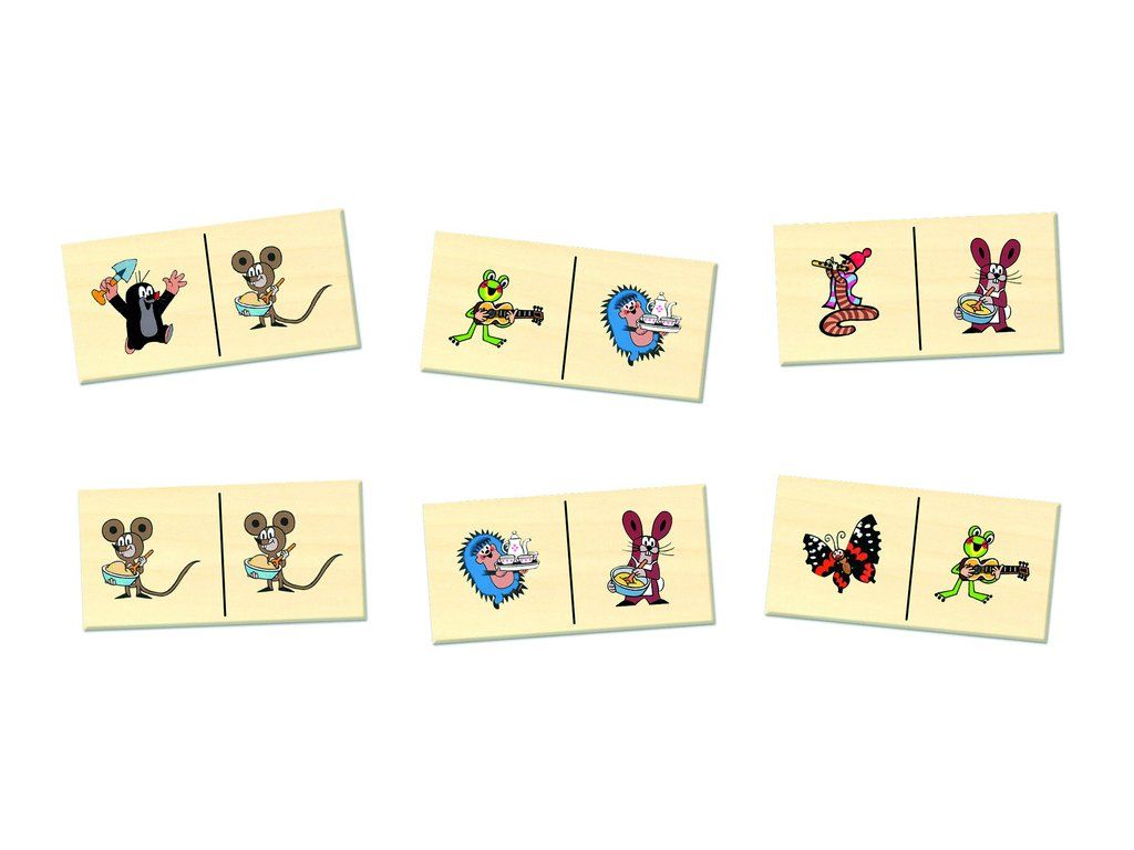 Drevené domino s motívmi Krtka a jeho kamarátov prináša deťom veselú a hravú zábavu, ktorá spája klasickú hru s obľúbenými postavičkami.