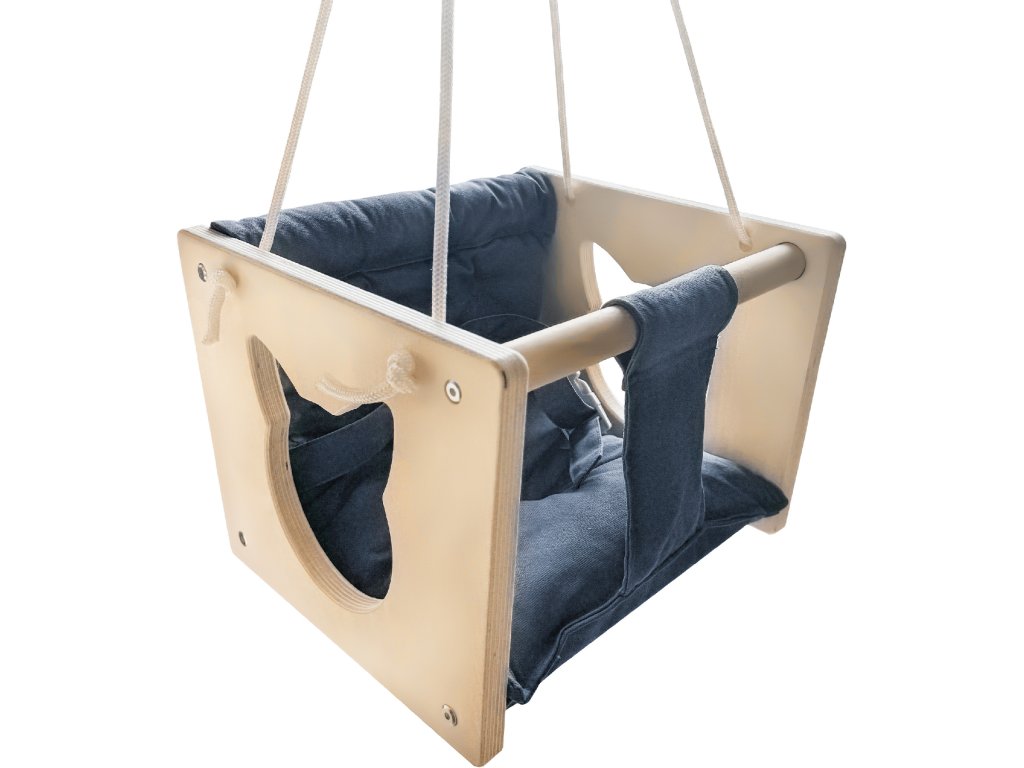 Táto detská hojdačka z kombinácie bukového a brezového dreva so sedadlom zo 100 % bavlny je štýlovým aj praktickým doplnkom. Moderný minimalistický dizajn s motívom hviezdy a elegantné spojenie tmavosivej farby s prírodným drevom sa hodí do každého interiéru aj exteriéru.
