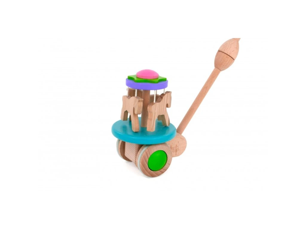 Drevená hračka na tlačenie Kolotoč