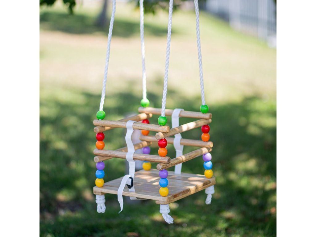 Ideálna prvá drevená hojdačka s pestrofarebnými bočnými stranami a extra upevňovacími popruhmi. Skvelá voľba na záhradu pre najmenšie deti, ktoré si chcú bezpečne užiť hojdanie. Hojdačka je lakovaná a vyrobená z kvalitných, zodpovedne získaných materiálov, vďaka čomu je odolná a príjemná na používanie. Pre upevnenie je potrebné použiť karabíny a kovové háky, ktoré nie sú súčasťou balenia. Na bezpečné pripevnenie napríklad k silnej vetve stromu je potrebné zabezpečiť vhodné montážne prvky. Výrobok spĺňa aktuálne európske bezpečnostné normy. Pri používaní sa odporúča dohľad dospelej osoby. Pre dlhšiu životnosť odporúčame chrániť hojdačku pred nepriaznivými vonkajšími vplyvmi.Obsah balenia: