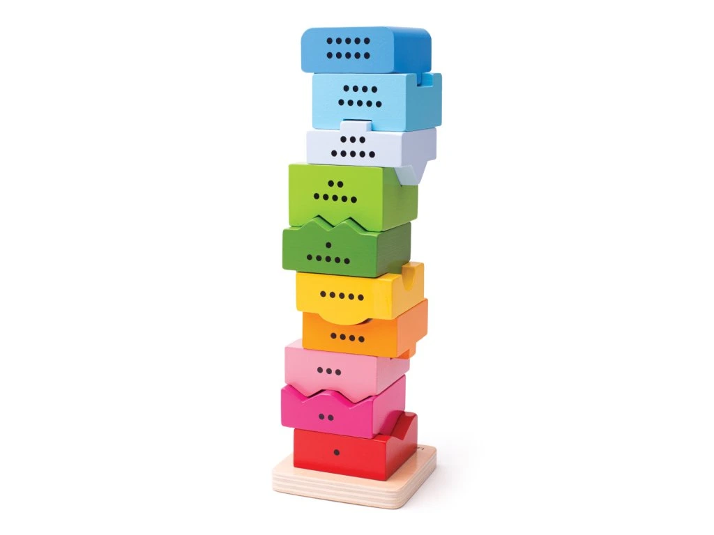Stavajte vežu a počítajte bloky s touto drevenou očíslovanou vežou v mnohých farbách. Každý farebný blok má svoje číslo a dieťa sa pri stavbe učí počítať od jednej do desiatich. Jednotlivé bloky sú skladačkového typu, takže sa deti učia správne spájať tvary.