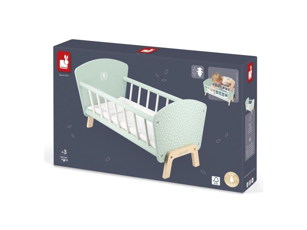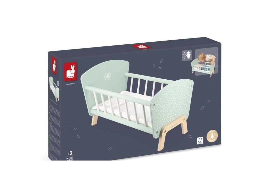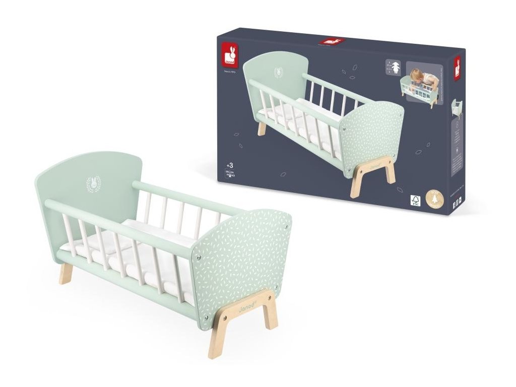 Bábiková postieľka s prikrývkou a vankúšikomJe čas spánku pre bábiku! Táto krásna drevená postieľka FSCTM je ideálna na uloženie bábiky a jej jemné prenesenie do krajiny snov. Malých chlapcov aj dievčatá očarí prikrývka a vankúšik v tvare zajačika.