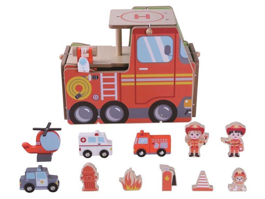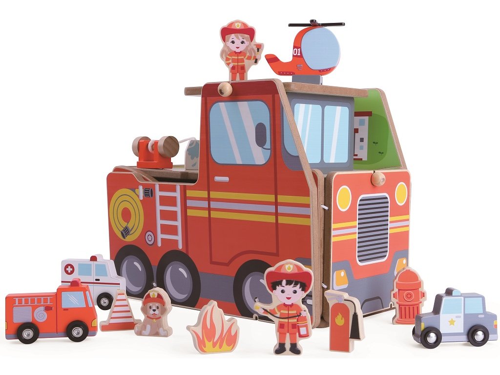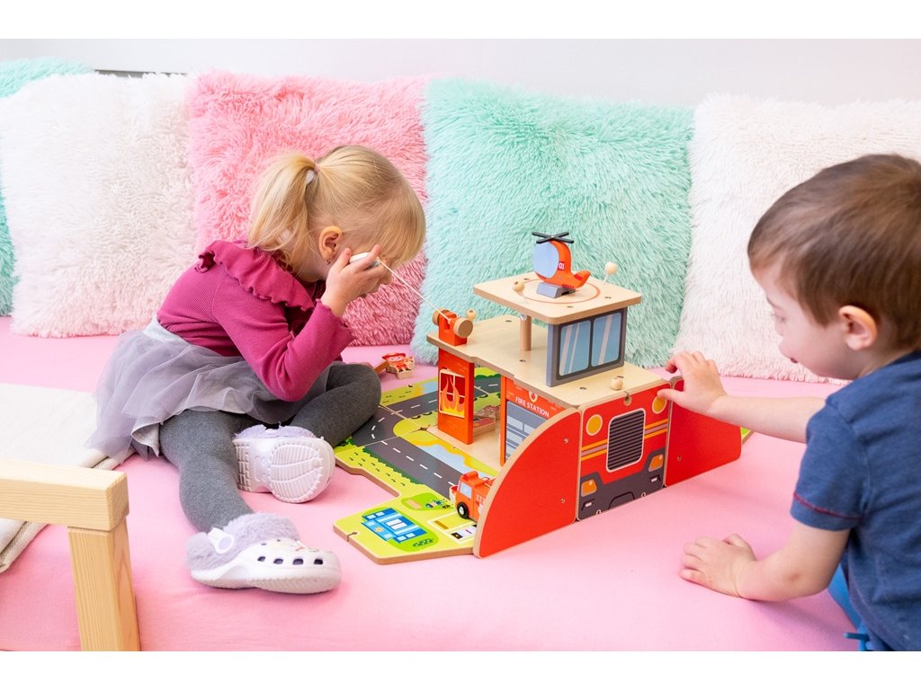 2Kids Toys Drevená stanica Hasiči 2 v 1 – hasičská stanica a auto v jednom prináša deťom jedinečný herný zážitok plný akcie. Tento premyslený set spája dve obľúbené detské hry do jedného celku, ktorý podporuje fantáziu a dobrodružstvo.