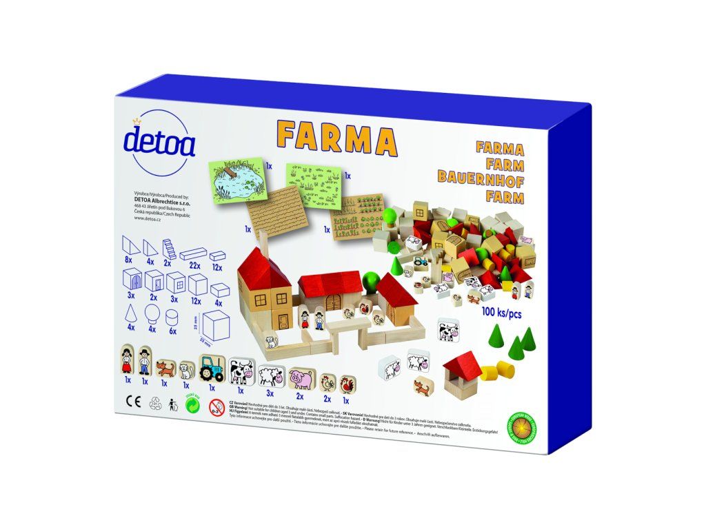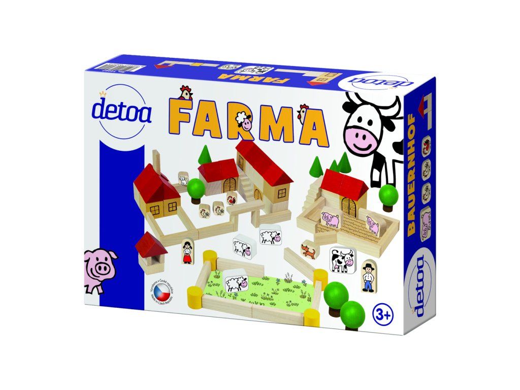 Časť dielov je potlačená atraktívnymi ikonami so zvieratkami a typickými motívmi vidieka, čo podporuje hravé učenie a fantáziu.