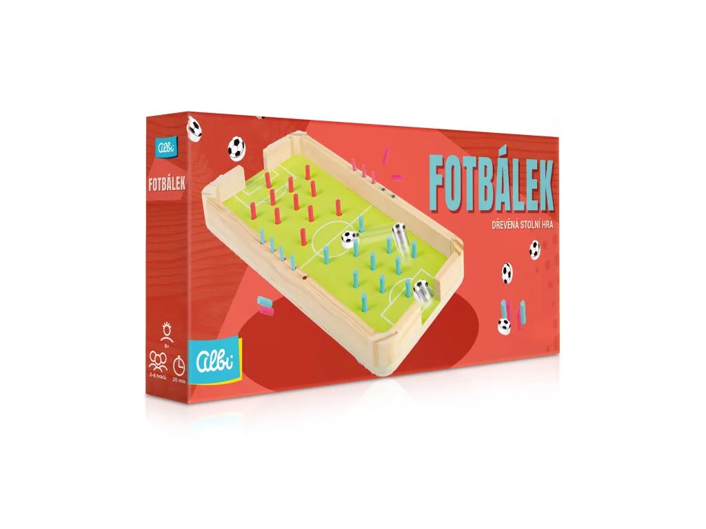 Drevený cvrnkací Futbal od Albi je súčasťou série 3 jednoduchých a zábavných stolových hier pre 2 hráčov. Ideálna voľba na rýchlu partičku, oddych aj priateľské súťaženie.