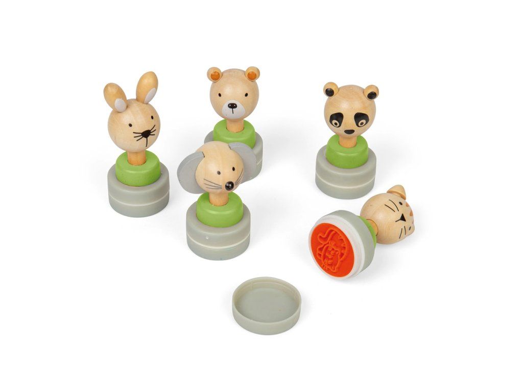 S drevenými atramentovými pečiatkami v tvare zvieratiek si deti užijú množstvo zábavy. Každá pečiatka zobrazuje jedno roztomilé zvieratko a tlačí inou farbou. Vďaka dobre uchopiteľným držadlám sa s nimi deťom ľahko pracuje. Nechajte malých umelcov dotvárať svoje kresby pomocou farebných zvieratiek. Kreatívne a výtvarné aktivity pomáhajú rozvíjať jemnú motoriku aj koordináciu ruka–oko, keďže sa deti učia správne uchopiť pečiatku a vytvoriť odtlačok. Motívy zvieratiek zároveň podporujú lásku k prírode, predstavivosť a kreatívne myslenie. Pečiatky sú vyrobené z kvalitného a udržateľného dreva s certifikáciou FSC® a farbené netoxickými farbami a lakmi. Spĺňajú všetky aktuálne európske bezpečnostné normy. K dispozícii je 5 motívov zvieratiek – mačka, zajačik, panda, medveď a myška. Ak máte záujem o konkrétny motív, uveďte ho prosím do poznámky v objednávke. Pokiaľ bude skladom, radi vám vyhovieme. V prípade, že si motív nezvolíte, zasielame náhodný výber. Cena je uvedená za 1 kus.Obsah balenia: