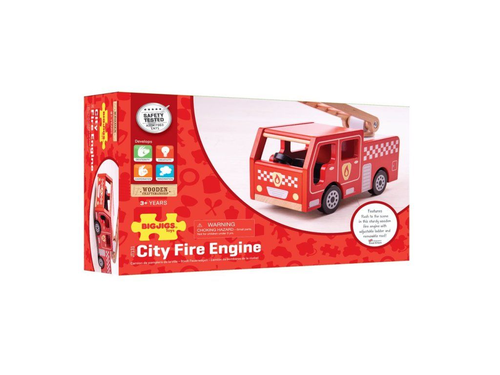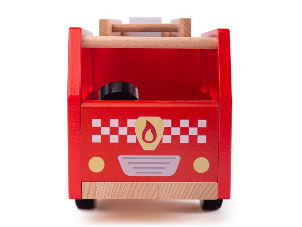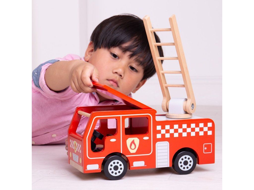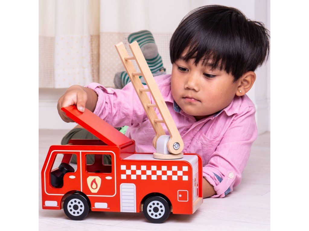 Rozviňte imaginatívnu hru s týmto nádherne detailným dreveným hasičským autom. Toto krásne spracované vozidlo je ideálne pre každého začínajúceho malého hasiča a je pripravené vyraziť na miesto zásahu. Deti môžu zdvíhať a otáčať rebrík, aby dosiahli do výšok, hasili požiare alebo zachraňovali mačky zo stromov.