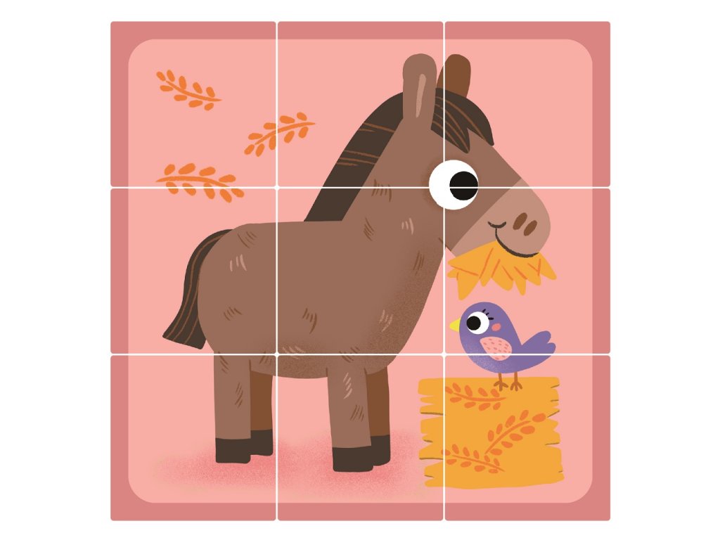 Dokážeš poskladať všetky zvieratká? Deväť drevených kociek vytvára šesť rôznych ilustrácií. Otoč každú kocku a vytvor obrázok, alebo ich premiešaj a vytvor úplne nové, doteraz nevidené tvory!