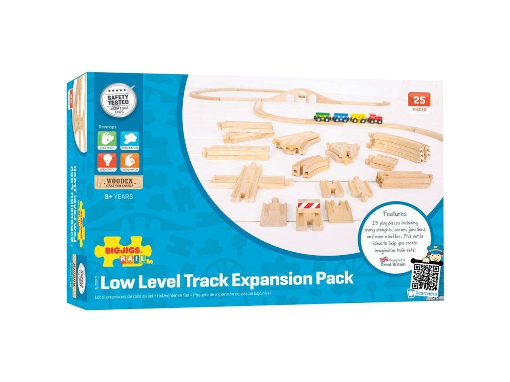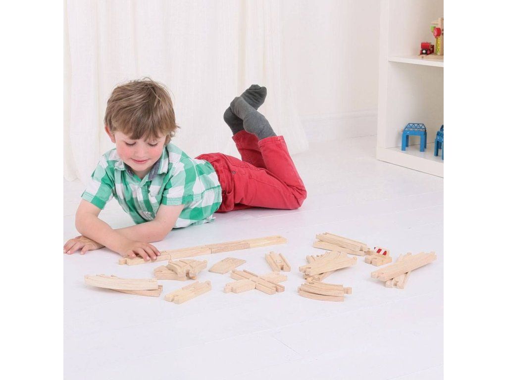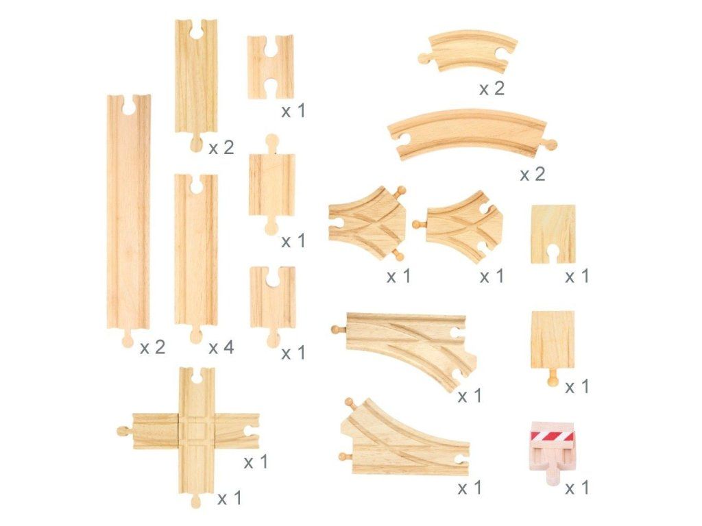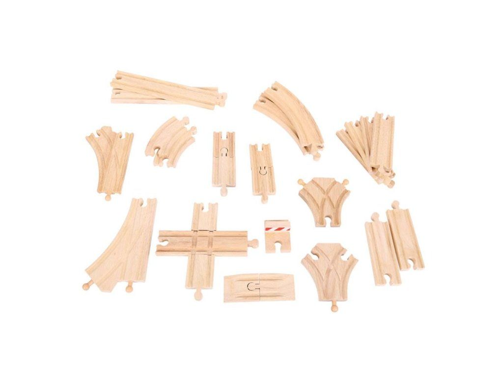 Výhodný pomer skvelej ceny a kvality/množstva koľají robí z tohto setu jeden z najpredávanejších. Set obsahuje 25 kusov kvalitných drevených dielov koľají, ktoré možno jednoducho pridať k akejkoľvek existujúcej vláčikovej dráhe.