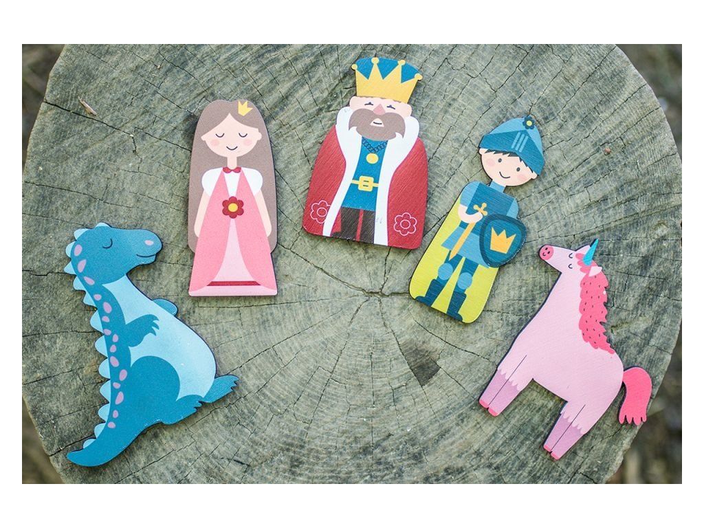Drevené magnetky kráľ, princezná, princ, drak a jednorožec sa budú vynímať na chladničke, tabuli alebo akomkoľvek inom magnetickom povrchu. Sú vyrobené z topoľového dreva, pomaľované farbami bezpečnými pre deti a majú certifikáciu CE, ktorá zaručuje ich bezpečnosť a vhodnosť pre deti od troch rokov.