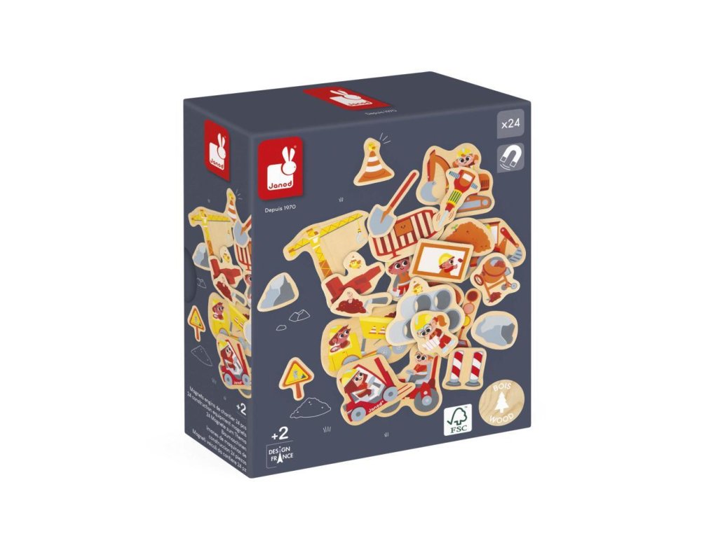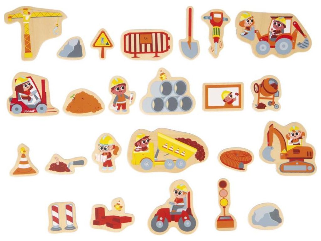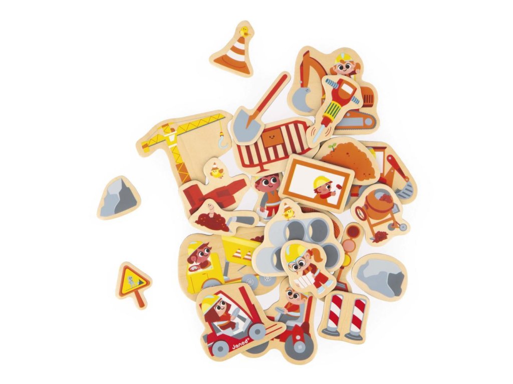 Drevené magnetky pre deti Na stavbe 24 ks