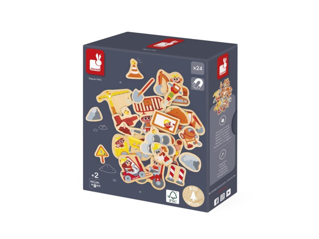 Ponorte sa do sveta stavebných projektov s touto sadou drevených magnetov! Magnety predstavujú rôzne stavebné stroje – žeriavy, buldozéry, nákladné autá a ďalšie – ktoré deti môžu umiestniť na magnetickú tabuľu alebo iný kovový povrch.