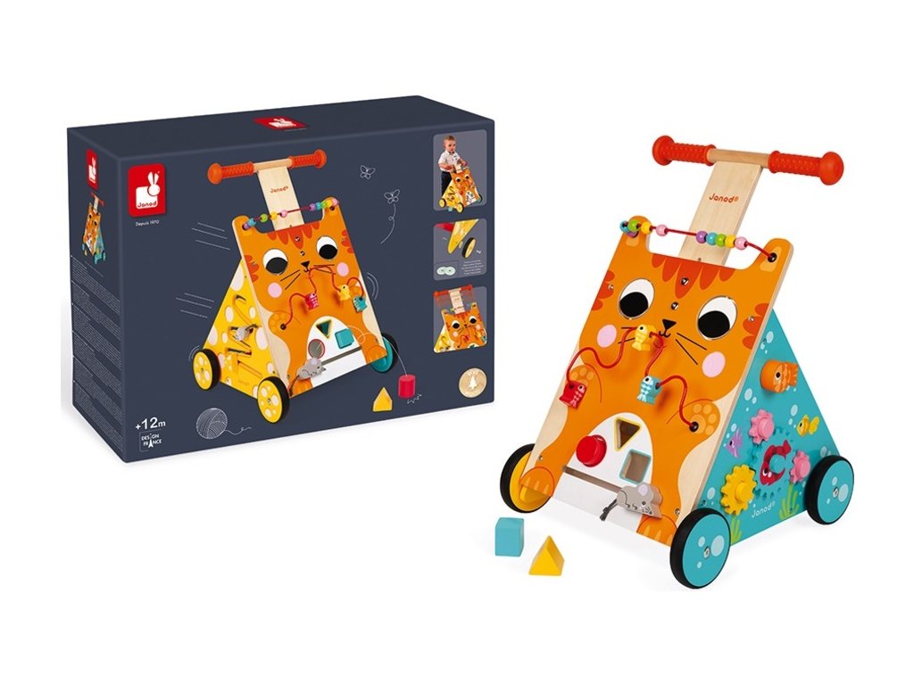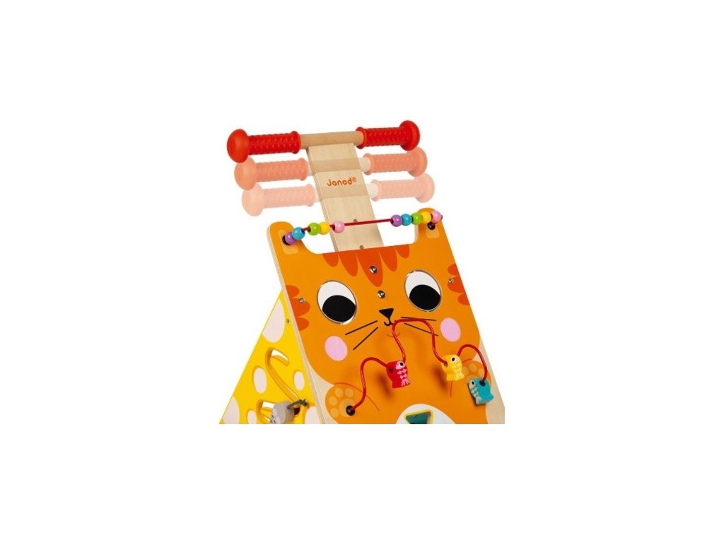 Atraktívne viacúčelové drevené chodítko a motorická hračka zároveň je ideálne na podporu učenia sa chodiť. Vďaka výškovo nastaviteľnej rukoväti (47 až 53 cm) sa chodítko prispôsobuje veľkosti vášho dieťaťa. Obsahuje neviditeľnú a odnímateľnú brzdu, ktorou môžete zablokovať kolesá a postupne ich uvoľňovať podľa zručností dieťaťa. Okrem podpory chodenia rozvíja jemné motorické zručnosti a obratnosť pomocou zábavných aktivít priamo na chodítku.