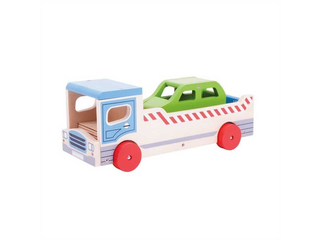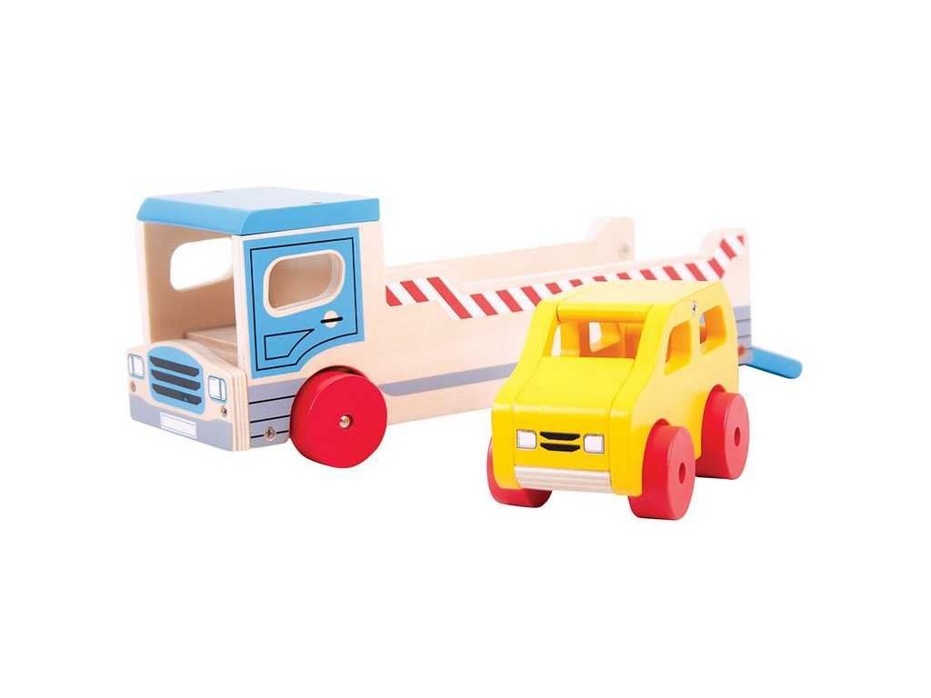 Drevené odťahové auto s osobným autom