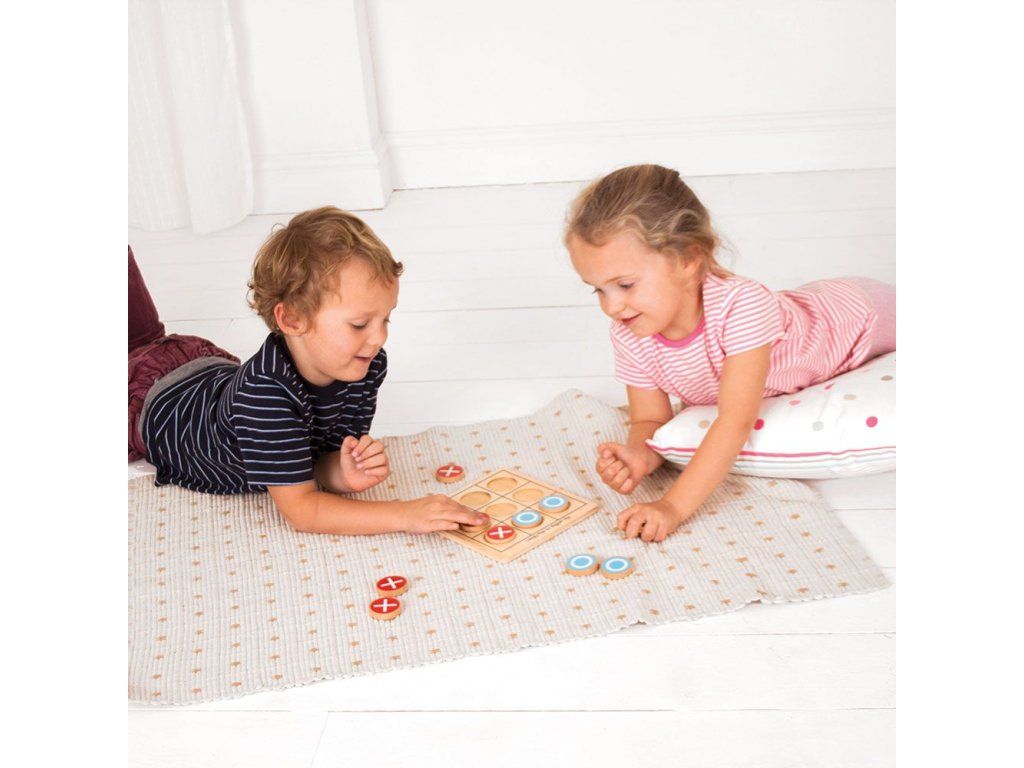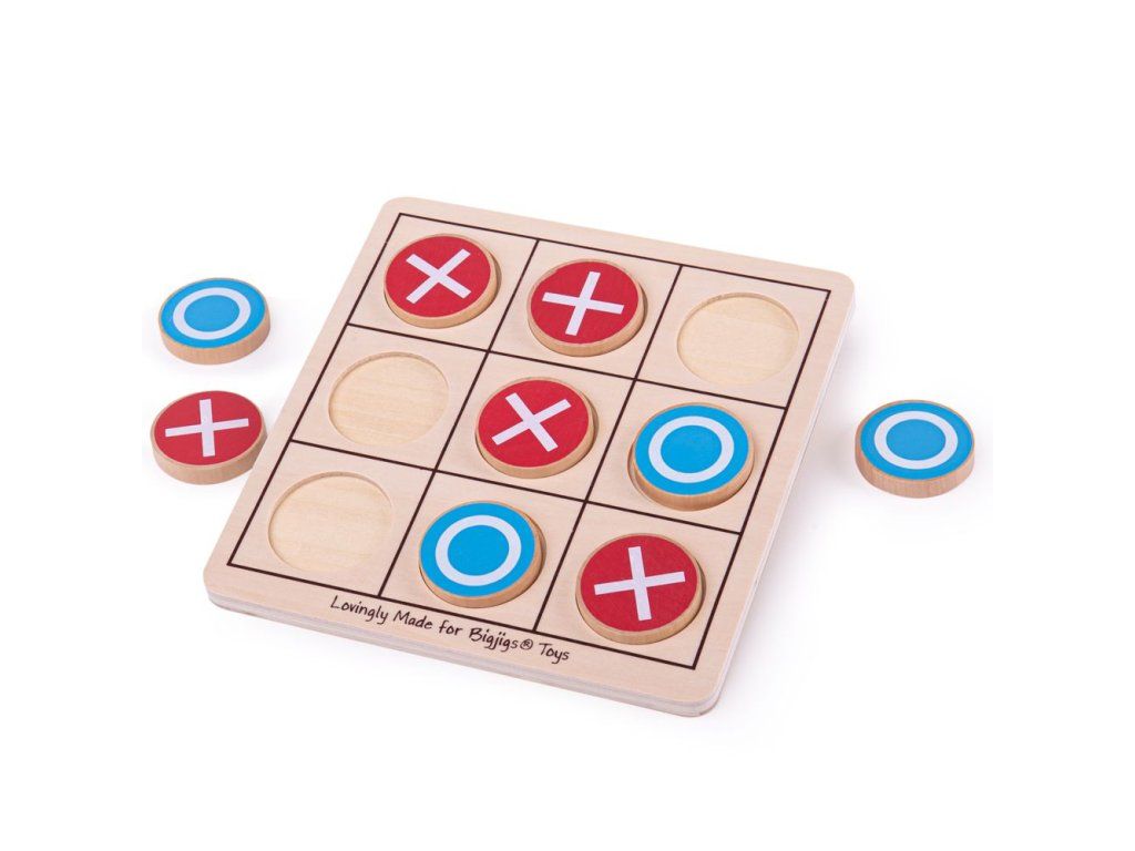 Zabavte deti touto robustnou drevenou hrou piškvorky. Hra obsahuje 10 kameňov, z toho 2 sú náhradné. Cieľom hry je vytvoriť horizontálny, vertikálny alebo diagonálny rad z vašich kameňov. Hrá sa na hracej doske, ktorá je rozdelená na 9 políčok. Víťazom sa stáva hráč, ktorý ako prvý vytvorí požadovaný rad.