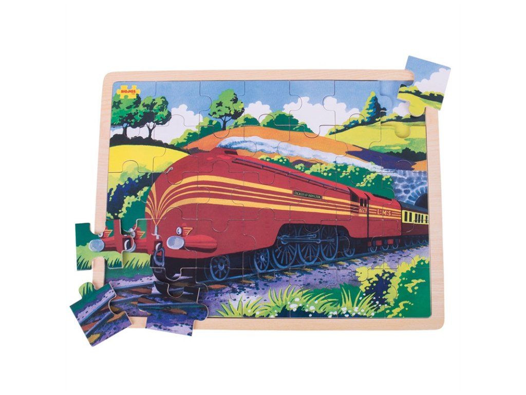 Drevené puzzle prináša do detského sveta vzrušujúci kúsok histórie železničnej dopravy. S jemne vyrezanými 35 dielikmi ponúka zaujímavú výzvu na rozvoj jemnej motoriky a priestorovej predstavivosti.