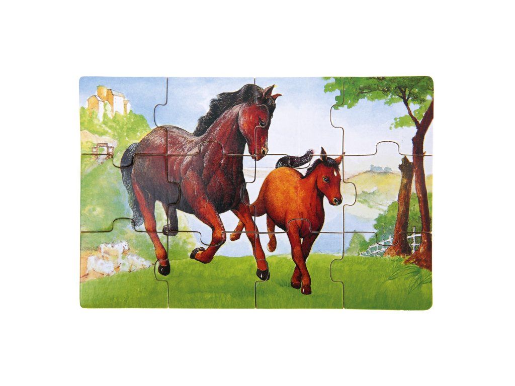 Psík, mačka, kone a králiky potešia všetkých malých milovníkov zvierat. Deti si pri skladaní trénujú pozornosť, logické myslenie a trpezlivosť.