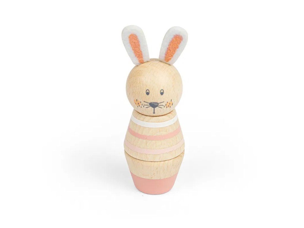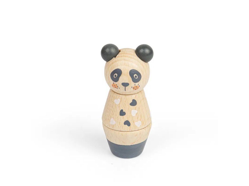 Drevená hračka s milým dizajnom je vhodná aj na cesty. Skrutkovanie a odoberanie dielov je skvelá aktivita na rozvoj obratnosti, jemnej motoriky a koordinácie oko–ruka. Zvieratká zároveň podporujú nápaditú hru.
