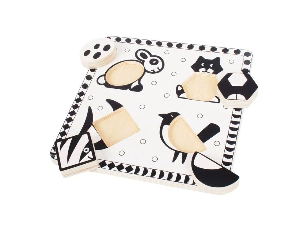 Drevené vkladacie puzzle čiernobiele tvary 2