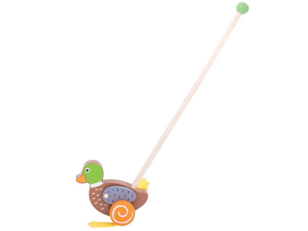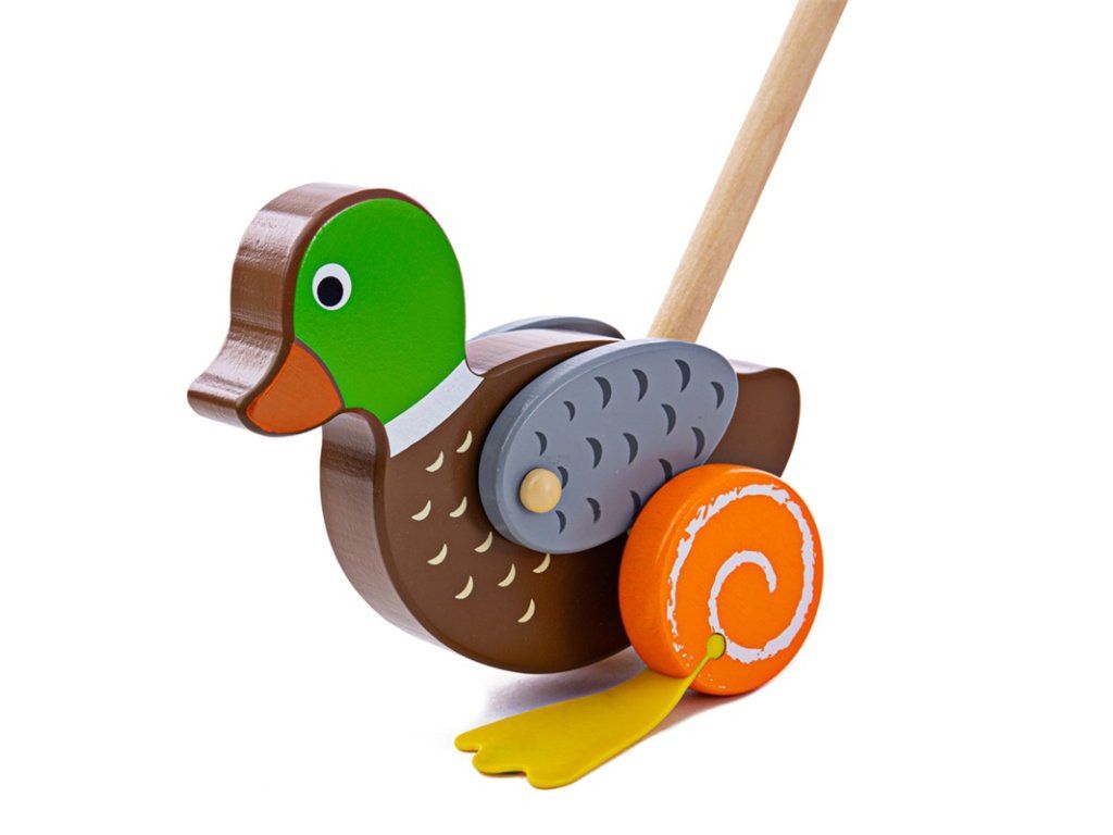 Rovnováha a pohyb sú zručnosti, ktoré deťom tento kačací jazdík pomôže rozvíjať. Držadlo je zakončené guľôčkou, takže ho dieťa ľahko uchopí a môže káčera strkať alebo ťahať doma aj vonku.