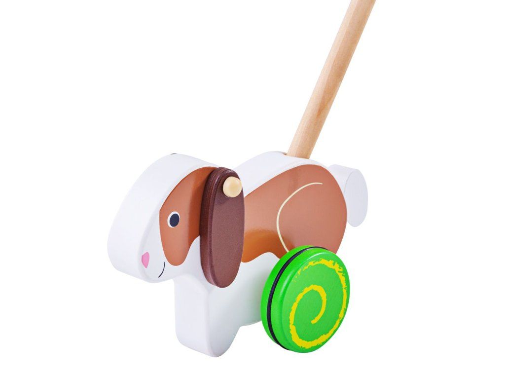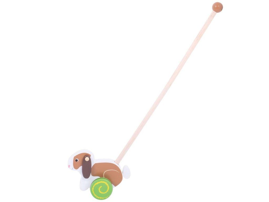 Rovnováha a pohyb sú zručnosti, ktoré deťom tento králik na kolieskach pomôže rozvíjať. Držadlo je zakončené guľôčkou, takže ho dieťa ľahko uchopí a môže králika strkať alebo ťahať doma aj vonku.
