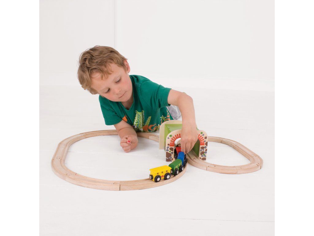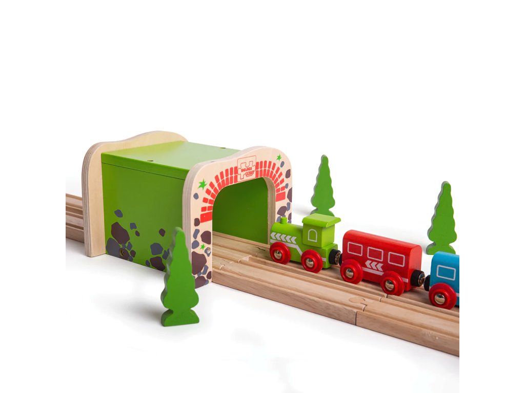 Drevený dvojitý železničný tunel z červených tehál s vysoko kvalitným povrchom je skvelým rozšírením každej vláčikovej dráhy. V tuneli je dostatok miesta pre prejazd dvoch vlakov, čo prináša väčšiu zábavu pri hre!
