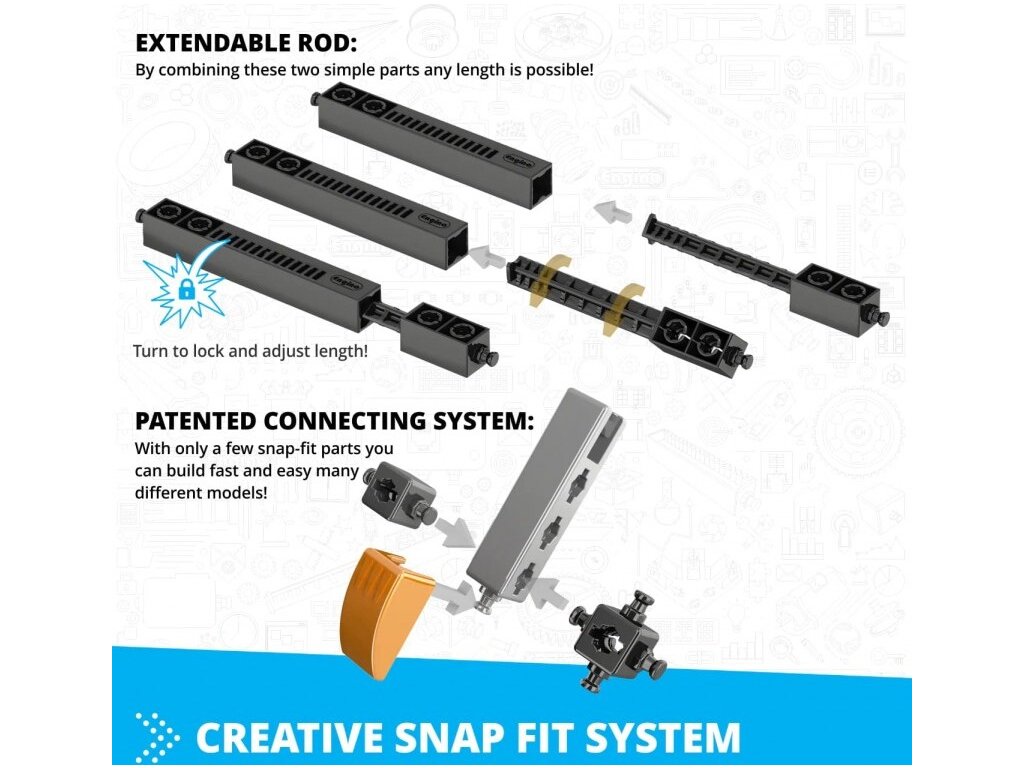 Táto praktická STEAM stavebnica, navrhnutá pre mladých inžinierov vo veku 8–12+, je vstupnou bránou k pochopeniu hydraulických systémov a ich zaujímavých princípov.