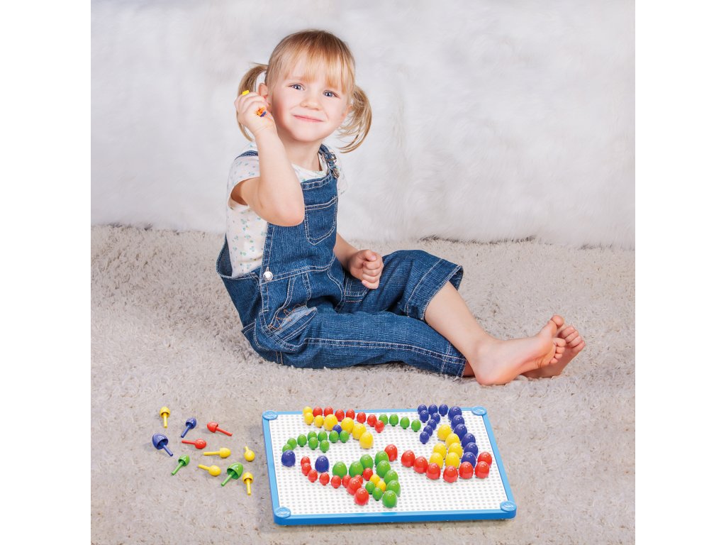 Nadčasová kompozičná hra, ktorá baví už niekoľko generácií detí. Deti môžu vyjadriť svoju kreativitu a precvičiť si koordináciu ruky a oka vkladaním kolíkov do dosky. Väčšia a veľkorysejšia doska uľahčuje skladanie a nový farebný rám skrášľuje umelecké diela. Dieťa môže skladať podľa vlastného uváženia alebo kopírovať ukážky z online albumu (prístupný prostredníctvom QR kódu na zadnej strane krabice).