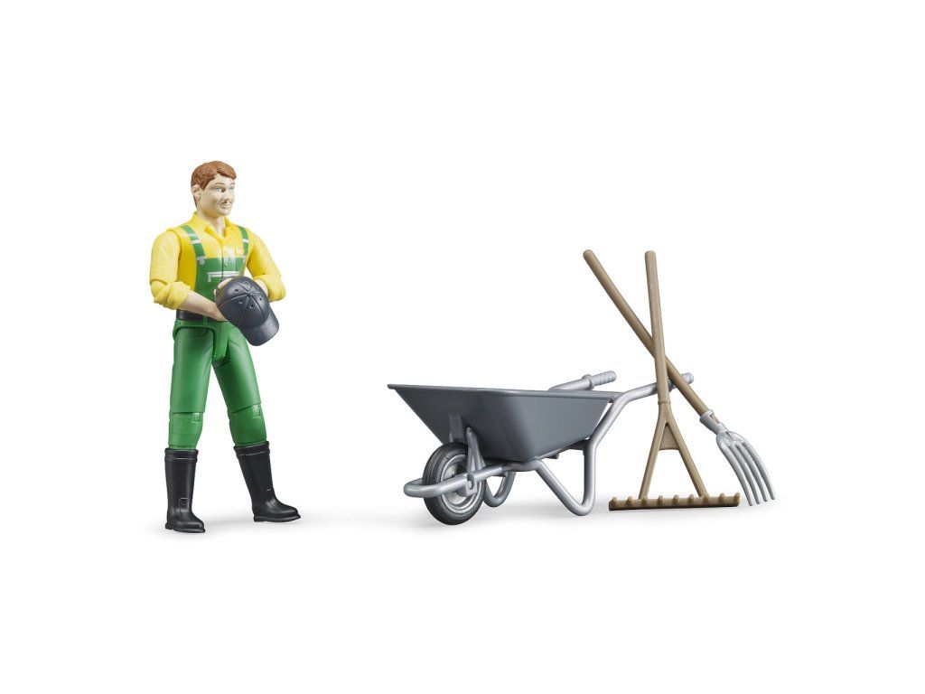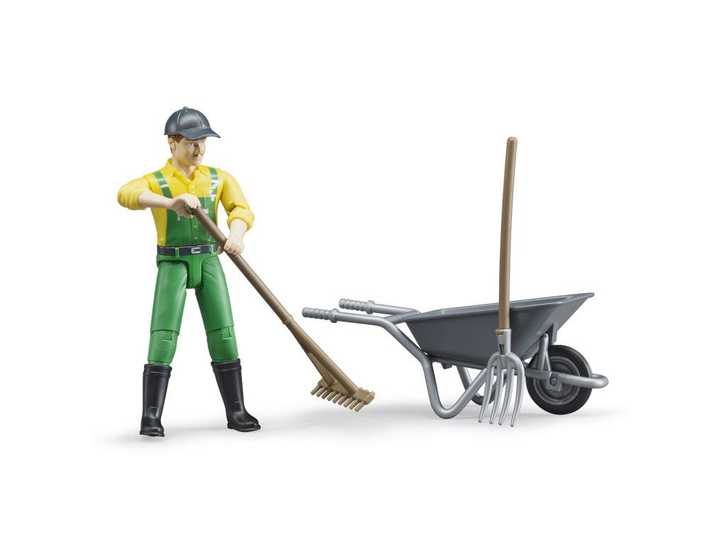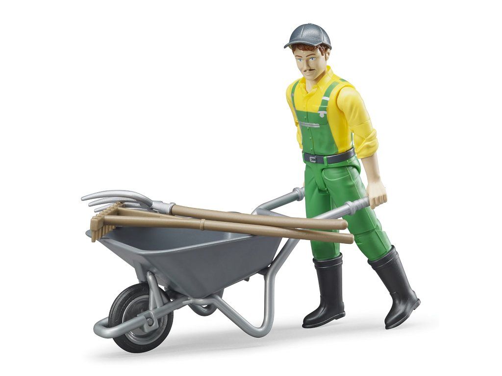 Figúrka farmára je skvelým doplnkom do každého poľnohospodárskeho sveta hračiek Bruder. Vďaka pohyblivým končatinám môže držať rôzne náradie a zapojiť sa do realistickej práce na farme – od čistenia kotercov až po prácu so senom a krmivom.