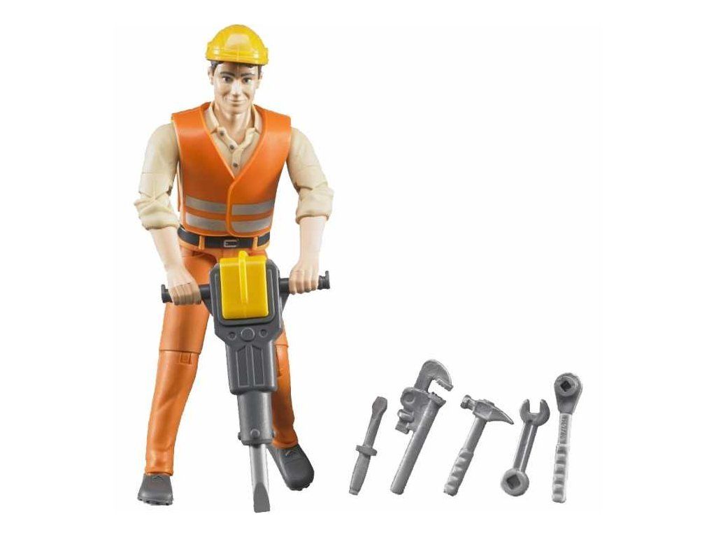 Figúrka je vybavená ochrannou prilbou a reflexnou vestou, ktoré dopĺňa bohatá sada náradia potrebného na stavbe – sbíjačka, skrutkovač, kladivo a hasák.
