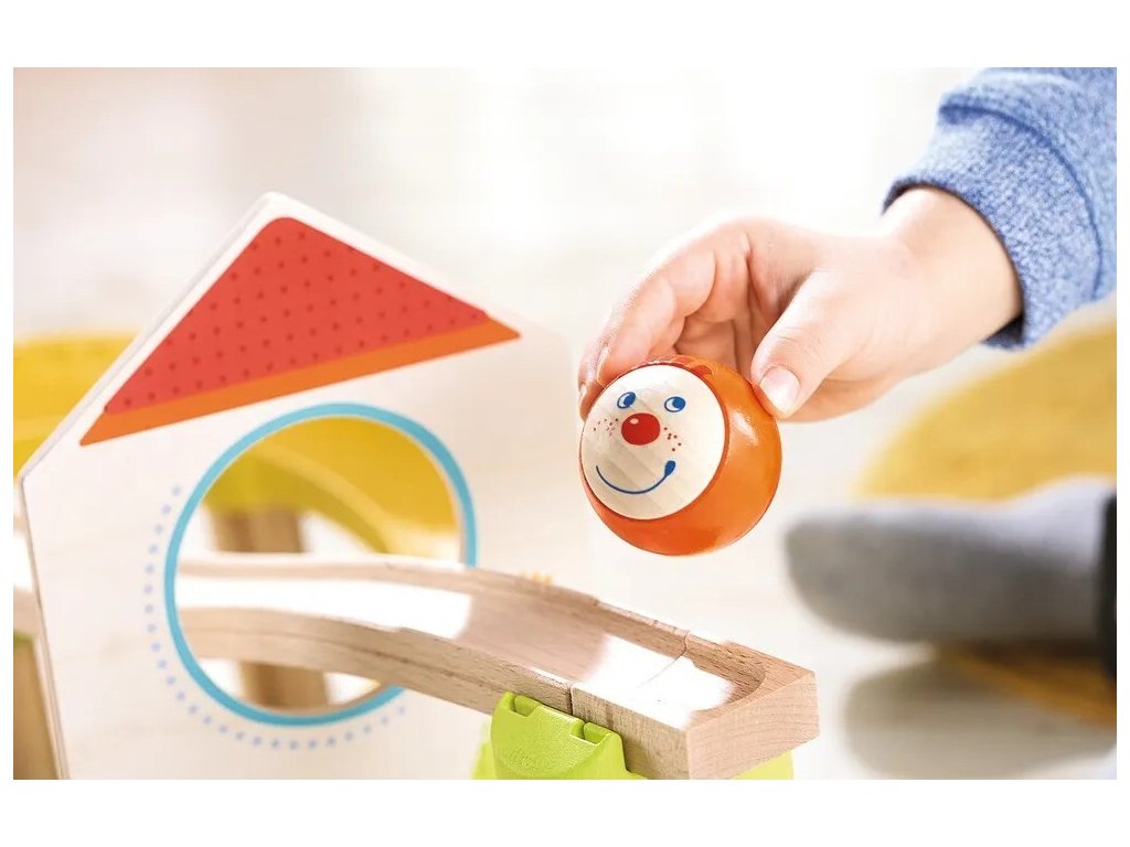 Drevená guľôčková dráha plná zábavy. Farebný a vzrušujúci svet s guľôčkou je určený pre deti od 2 rokov, všetky časti sú prispôsobené pre malé detské ruky. Šikovný nacvakávací systém stĺpikov zaisťuje stabilitu dráhy, jednoducho vložíte, kliknete a máte hotovo. Herný systém je flexibilný a umožňuje rozšírenie podľa vašich predstáv.