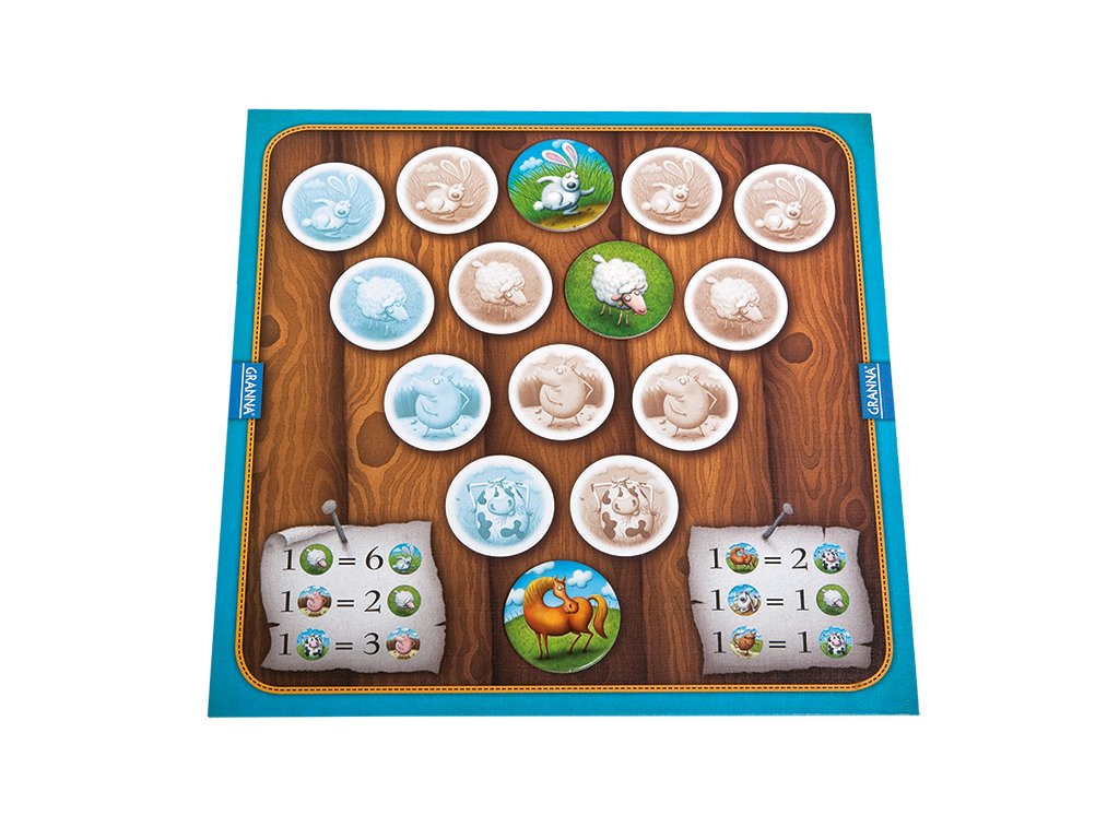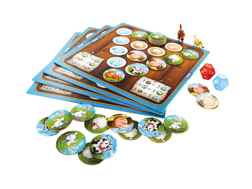 - 120 kartičiek s obrázkami zvierat (60 králikov, 24 oviec, 20 ošípaných, 12 kráv, 4 kone)