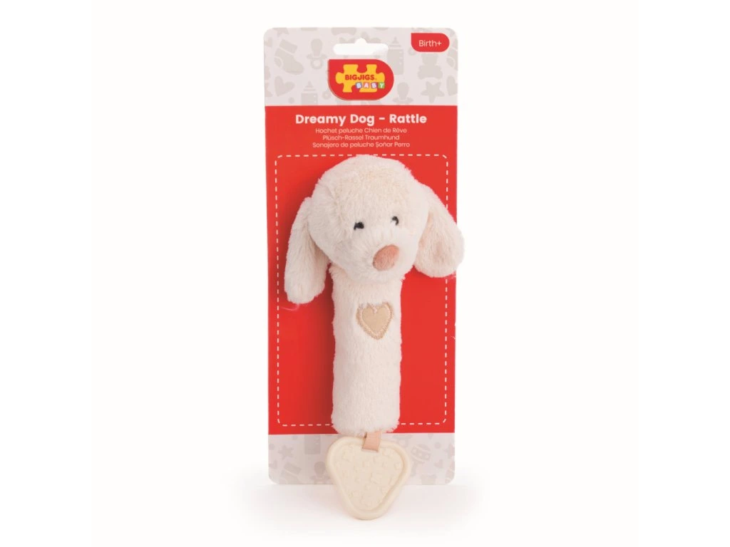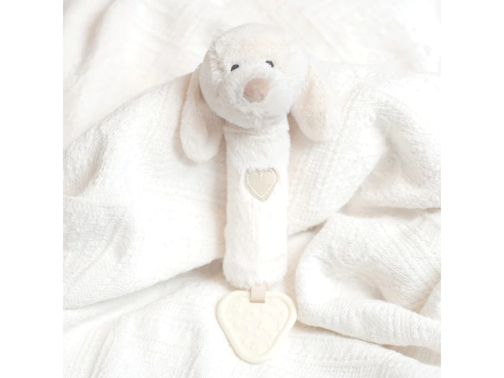 Hrkálka, pískatko a hryzátko v jednom. Tento super mäkký psík je vyrobený z jemných a bezpečných materiálov, ktoré sú šetrné k detskej pokožke. Hračka je navrhnutá tak, aby podporovala vývoj dieťaťa, a je ideálnym darčekom už pre novorodencov. Deti si môžu uľaviť ďasnám pomocou pevného hryzátka alebo hračku stlačiť a ona zapíska!