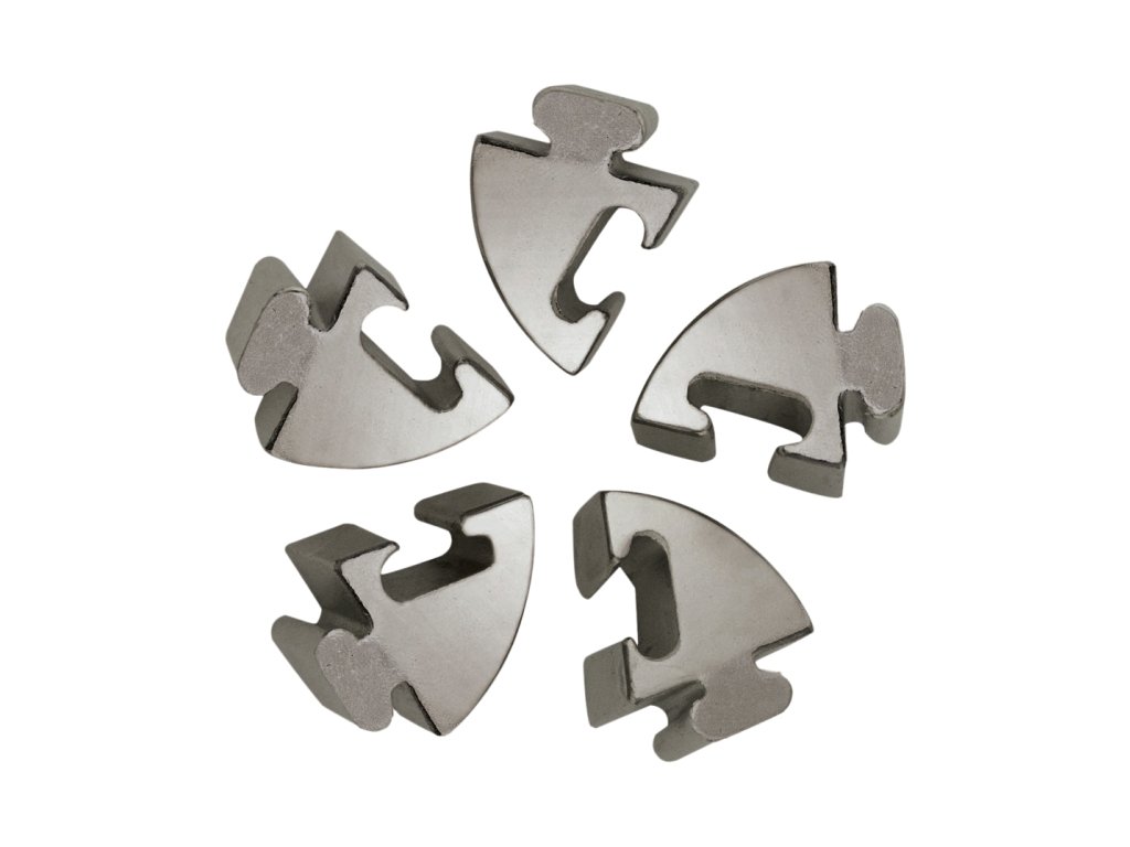 Hlavolamy Huzzle Cast sú v špeciálne navrhnutých formách odlievané zo zinku. Zinok je odľahčený a jeho precízna povrchová úprava priťahuje oko každého riešiteľa. Kovové hlavolamy Huzzle Cast sú vyrábané vo veľkosti, ktorá padne akurát do ruky.