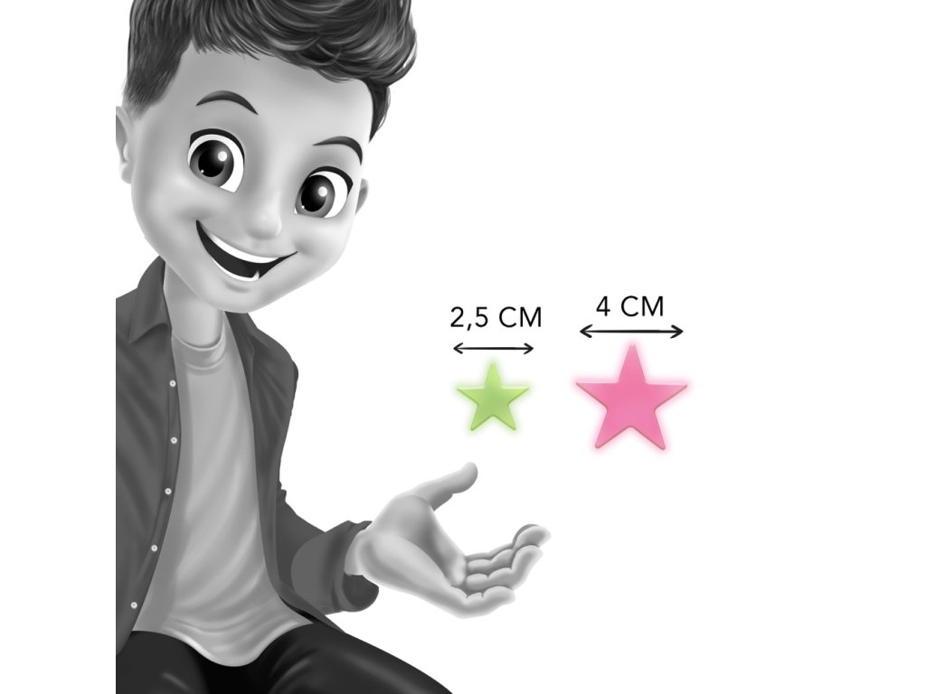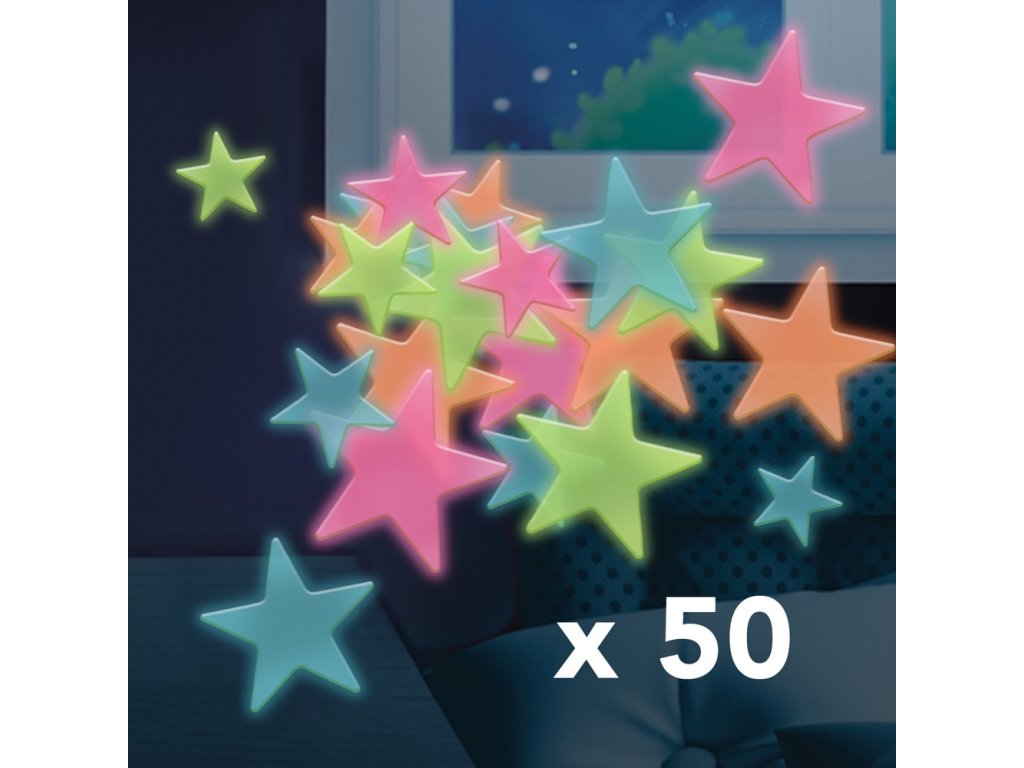 Fascinuje ťa vesmír? Ozdob si stenu v tvojej izbe touto úžasnou dekoráciou, ktorá v žiari v tme. Veľkosť hviezd je 2,5 a 4cm a v balení je ich približne 50ks.
