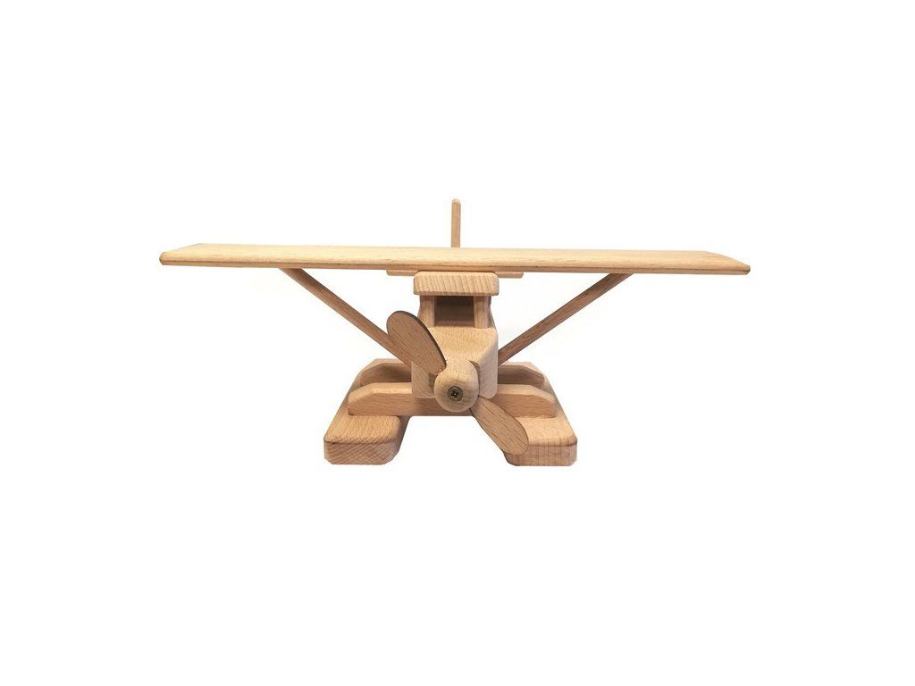 Drevený model lietadla je vyrobený z vysoko kvalitného bukového dreva. Povrch je iba voskovaný a leštený, bez chemických úprav či farbenia, aby si zachoval svoj prirodzený vzhľad.