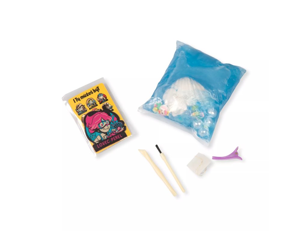 Sada Lovec perál pozýva deti na zábavné dobrodružstvo s hľadaním pokladov! Vylovte skryté perly z trblietavého morského slizu a objavte ich ukryté vo vnútri lastúry. Následne si z nálezov môžete vytvoriť perlový náramok a sponku s morskou pannou.