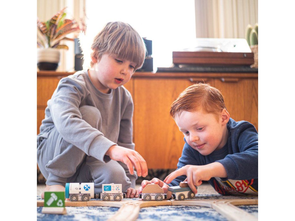 - Vláčikové dráhy a ich príslušenstvo značky Bigjigs Rail je možné kombinovať so všetkými ďalšími drevenými vláčikmi na trhu