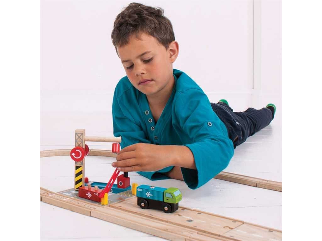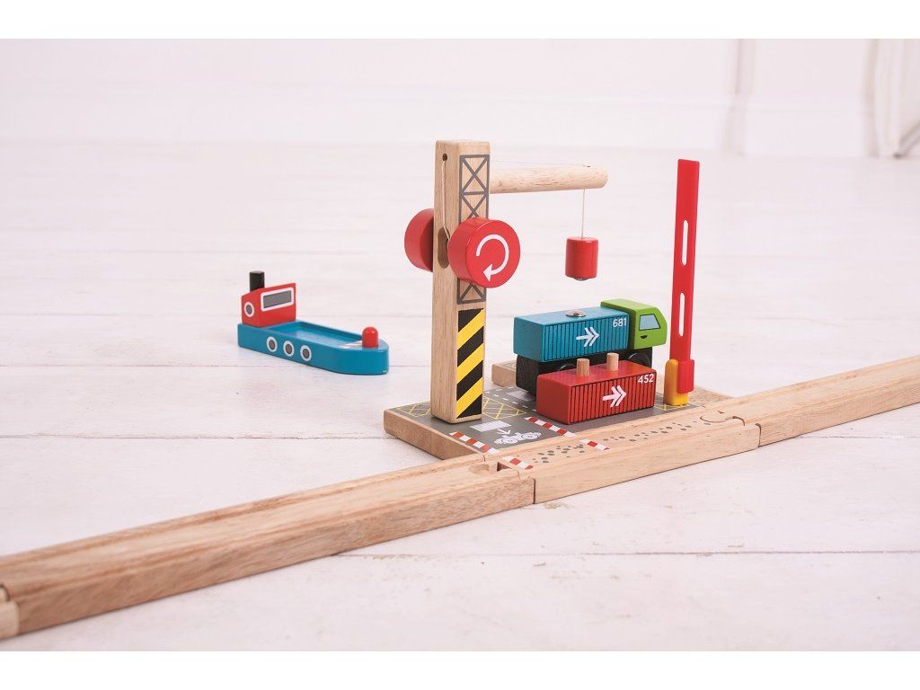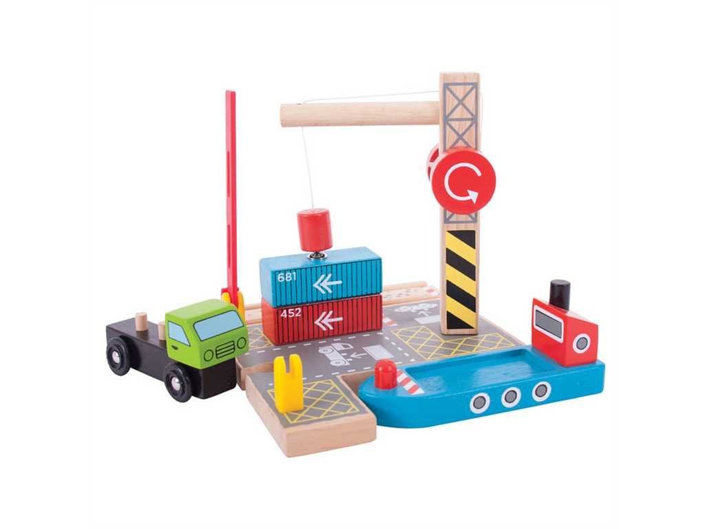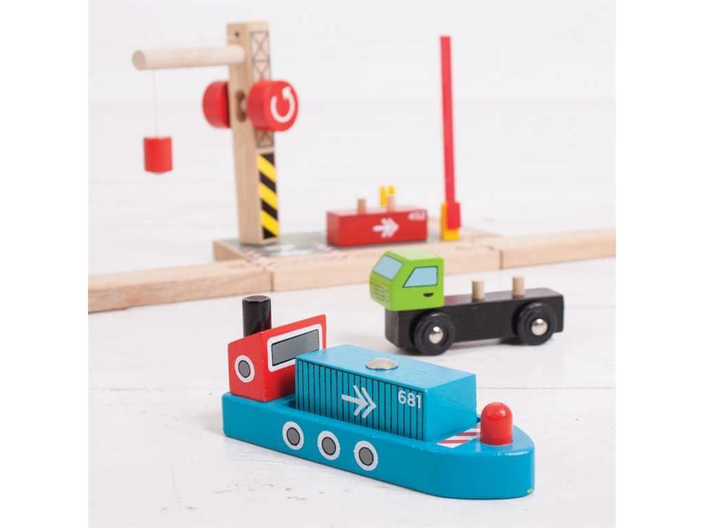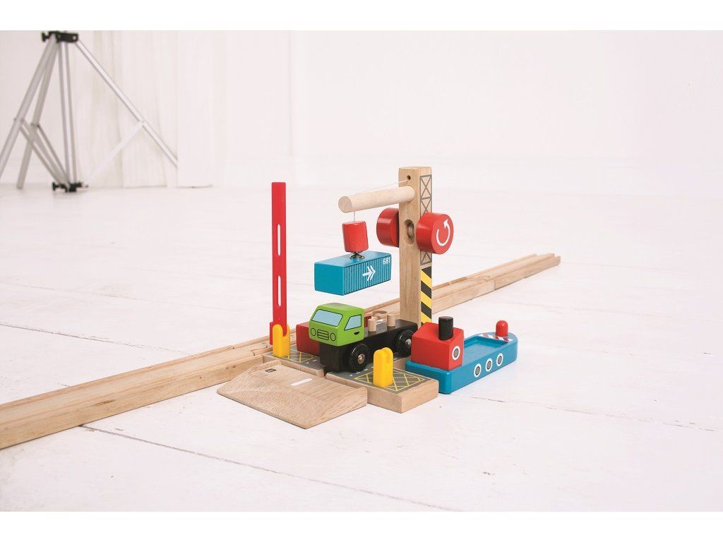 Toto prekladisko zvýši detskú predstavivosť a hranie sa na reálny svet! Set obsahuje drevené nákladné auto s kontajnermi a drevený žeriav. Set slúži na prekladanie nákladu z auta alebo vagónika na loď pomocou magnetického žeriavu.