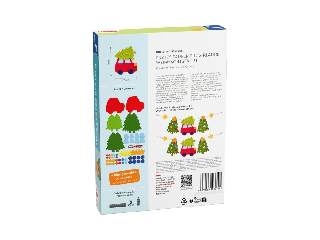 Prvé navliekanie – plstená girlanda Vianočná cesta– ideálna kreatívna sada pre deti od 3 rokov, ktorá podporuje jemnú motoriku, koncentráciu a prvé pokusy s navliekaním. Jednoduchá obrázková inštrukcia zaručuje vysokú pravdepodobnosť úspechu.