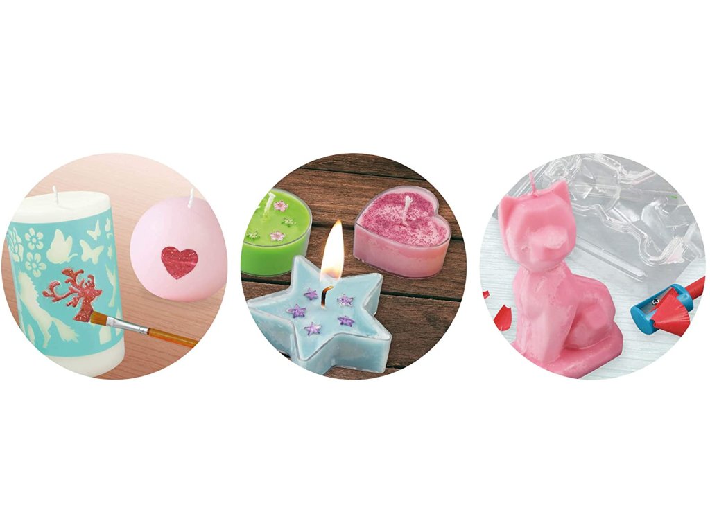 Kreatívna sada - Výroba sviečok je obľúbená súprava, ktorá umožňuje prejaviť kreativitu. Vyrábajte a zdobte prírodné sviečky s trendy tvarmi zo sójového vosku a bavlnených knôtov! Súčasťou tejto kreatívnej sady je aj špeciálna nádoba s bezpečným vekom na roztavenie sójového vosku v mikrovlnnej rúre. Výsledkom budú pôsobivé dekoratívne sviečky, ktoré skrášlia interiér alebo budú originálnym darčekom.