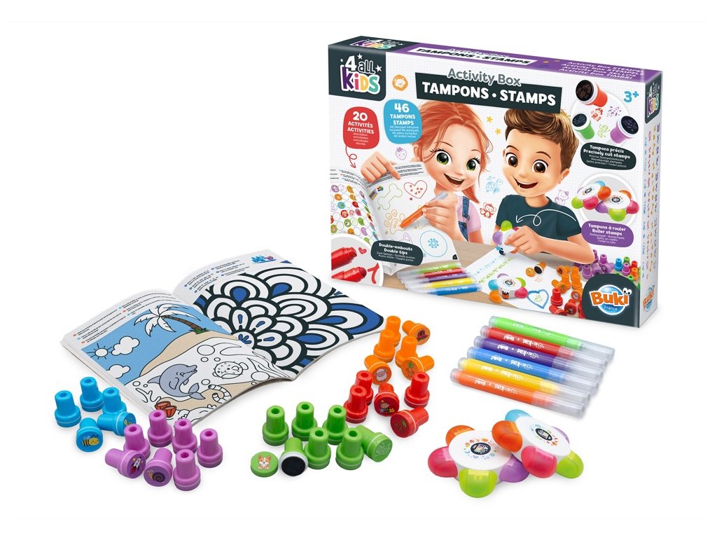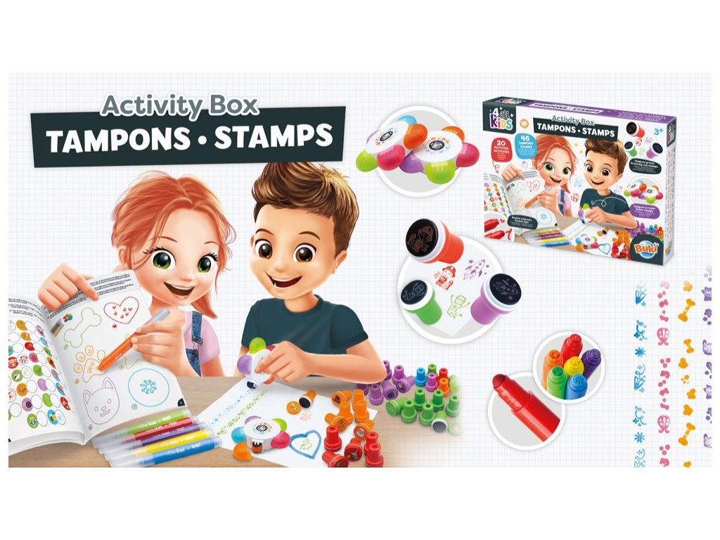 Zábavná a vzdelávacia sada s viac než 45 rôznymi pečiatkami, ktorá rozvíja kreativitu a jemnú motoriku detí.