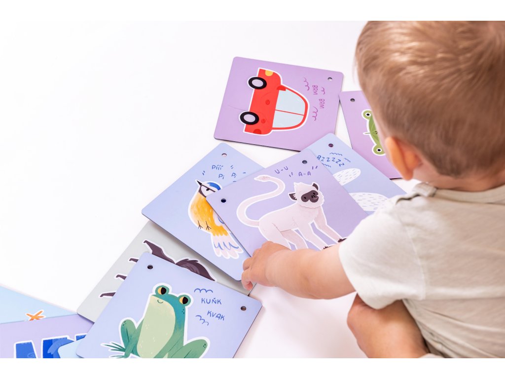 Karty majú veľkosť 15,5 × 15,5 cm a sú z 2 mm hrubého kartónu. Ľahko sa držia aj najmenším deťom, podporujú úchop a hrubú motoriku, a vďaka robustnému spracovaniu vydržia intenzívne používanie. Ideálna pomôcka pred prvými slovami – dieťa môže na obrázky reagovať zvukom skôr, ako začne hovoriť. Súprava výborne nadväzuje na KukiKuk kontrastné karty pre bábätká.
