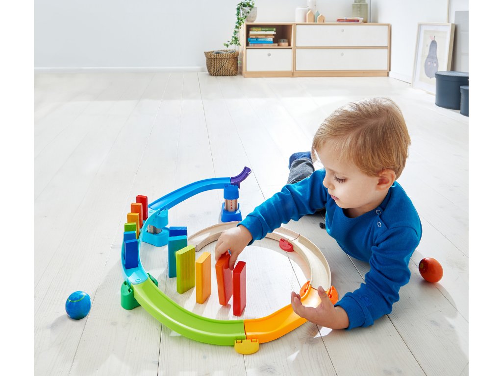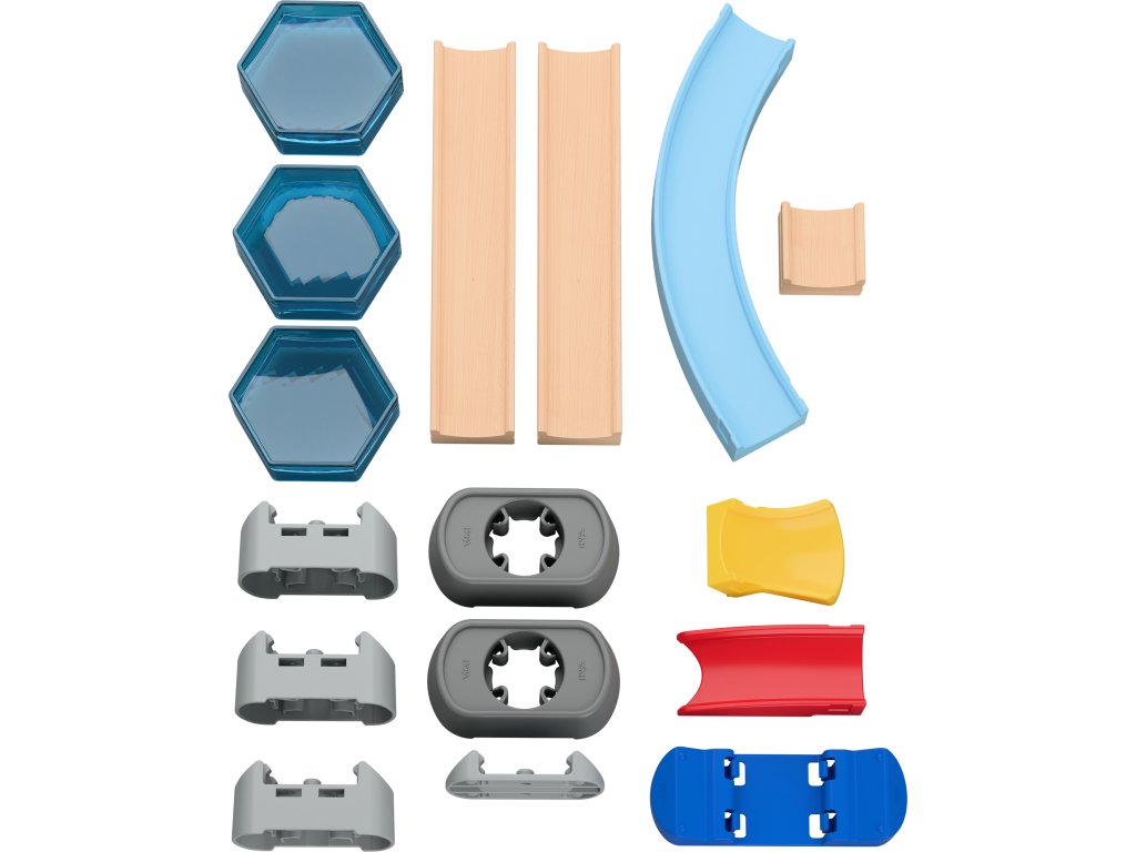 Krabica na stavenie guľôčkových dráh – ideálna zábava pre deti všetkých vekových kategórií. S 56 dielikmi je možné vytvoriť najmenej 10 rôznych dráh, vždy prispôsobených aktuálnej vývojovej fáze dieťaťa.