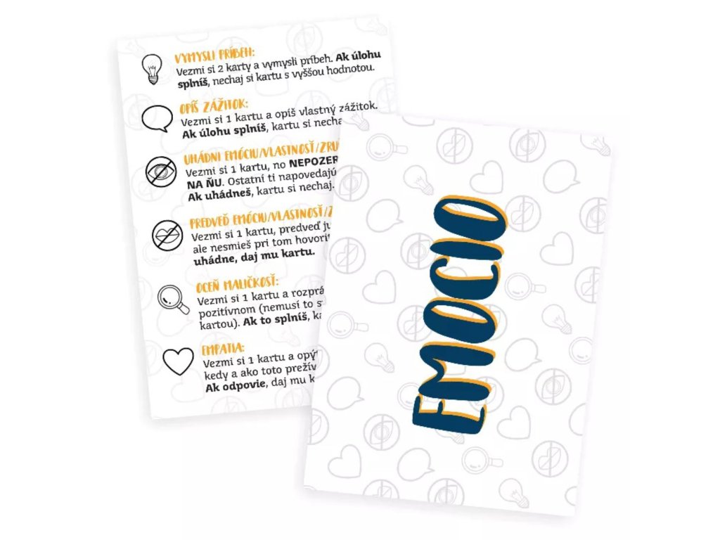 - brožúrku opisujúcu 40 emócií, vlastností alebo zručností + pravidlá hry,