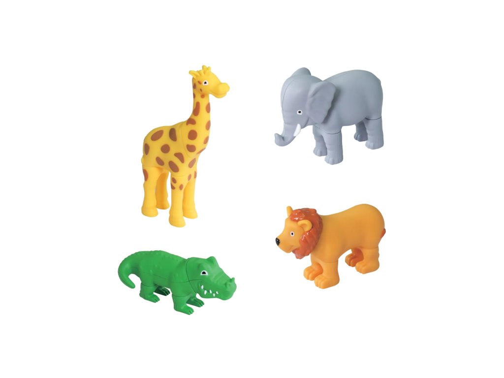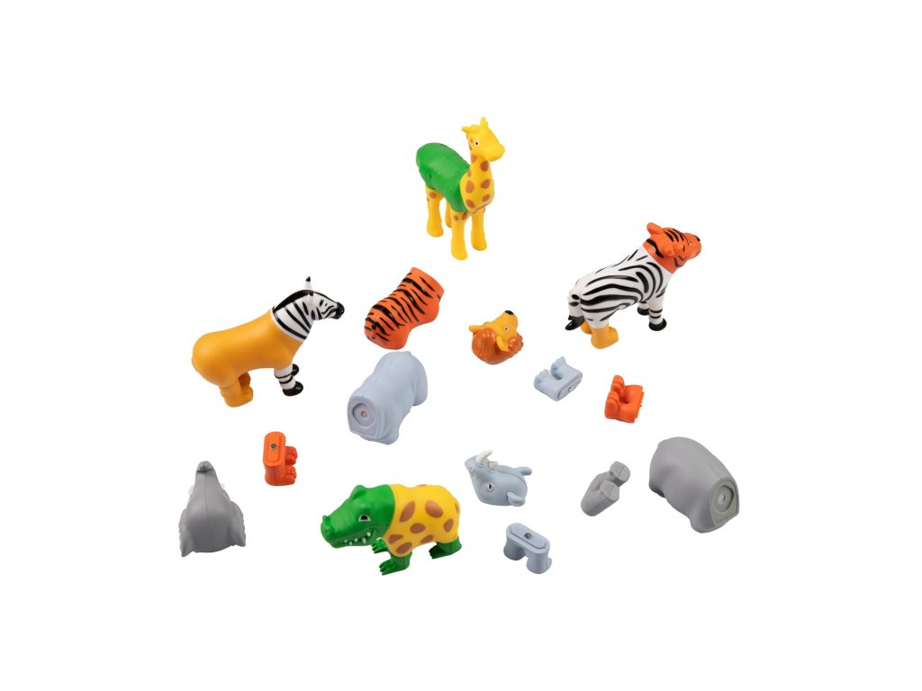 - 7 magnetických zvieratiek (tiger, zebra, žirafa, krokodíl, slon, nosorožec, lev), každé zo 4 častí