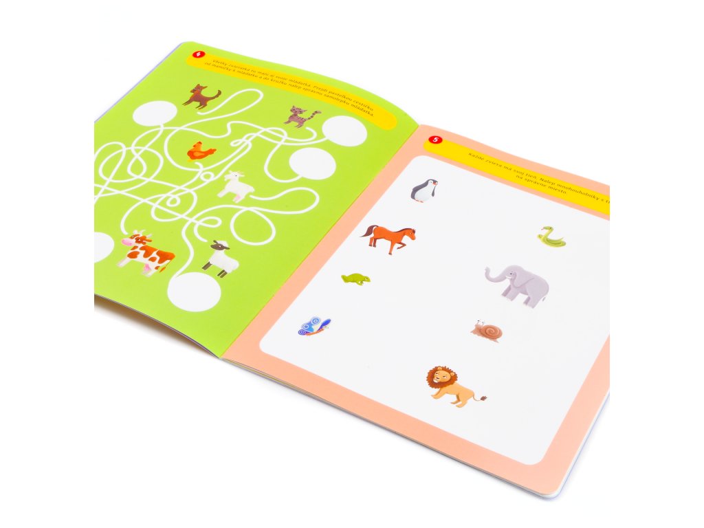 Samolepkový zošit so zvieratkami od Kvída pre deti od 3 do 7 rokov rozvíja koncentráciu, jemnú motoriku a predstavivosť.